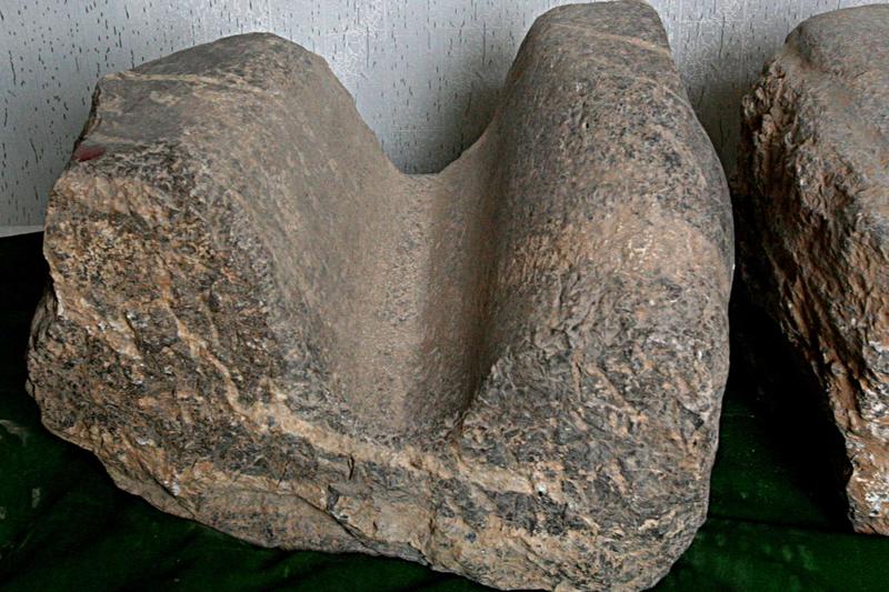 秦皇古驿道车辙石,为河北省井陉县政府于2002年所赠。大青石上一条深深的车辙痕,是秦始皇时代书同文、车同轨的历史见证。据《井陉县志》记载,秦皇古驿道距今已有两千多年的历史,为古代咸阳至燕赵及辽东的交通、邮驿要隘。秦始皇第五次出巡病死于沙丘(今河北省广宗县),载有其腐尸的辒辌车经过井陉古道返咸阳。而这条古驿道的照片作为“边框”(背景)于2013年登上全国集邮联“七大”邮票小型张。